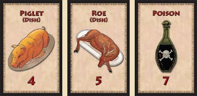 Example : If you want to play it safely, you can keep the feather for yourself, discard the poison and give the piglet to another player. If you want to play it risky, you can discard the piglet and give the poison to another player.